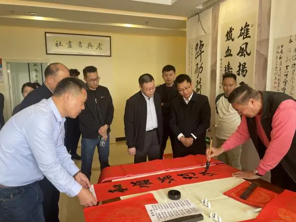 揭牌儀式當天,老班長工作室組織了揮毫潑墨活動。“老班長工作室,傳承雅韻,尋覓知音”“歲月悠悠,愿老班長工作室蒸蒸日上”……滿載著對老班長工作室深厚祝福的佳聯(lián)新鮮出爐。老班長們興致盎然,熱情洋溢地為蒞臨的退役軍人代表贈送墨寶。