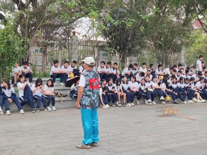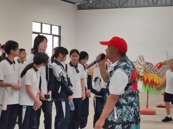 活動(dòng)現(xiàn)場(chǎng),陳永亮和陳錦瑞分工明確、各司其職、各盡所能,為參觀研學(xué)的東莞東華學(xué)校師生們講解紗龍歷史、制作工藝以及紗龍舞基本動(dòng)作。芝山紗龍是潮連當(dāng)?shù)氐墓爬厦耖g藝術(shù),距今已有700多年的歷史,經(jīng)過數(shù)百年的傳承和發(fā)展,潮連芝山紗龍?jiān)?015年被列入江門市第五批市級(jí)非物質(zhì)文化遺產(chǎn)名錄。與一般的舞龍表演不同,潮連芝山紗龍?jiān)邶埳韮?nèi)部點(diǎn)上蠟燭,這種獨(dú)特的裝飾方式使得它在夜晚表演時(shí)更具有別樣的韻味。陳永亮和陳錦瑞繪聲繪色的講述,引得現(xiàn)場(chǎng)學(xué)子們不時(shí)爆發(fā)出陣陣熱烈的掌聲。
