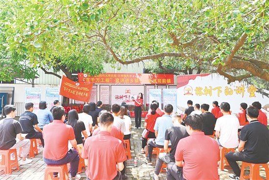 ??? 江門用有“料”有“趣”的方式把黨的聲音和“百千萬工程”政策送到群眾的心坎上,激勵(lì)廣大干部群眾積極投身“百千萬工程”實(shí)踐中。市委宣傳部組織開展“百千萬工程”基層宣講樣板課集體備課活動(dòng),承辦“新質(zhì)生產(chǎn)力主題宣講珠三角專場活動(dòng)(江門)”,用鮮活的基層實(shí)踐案例、生動(dòng)的語言,把政策理論掰開揉碎講進(jìn)群眾的心窩里。
